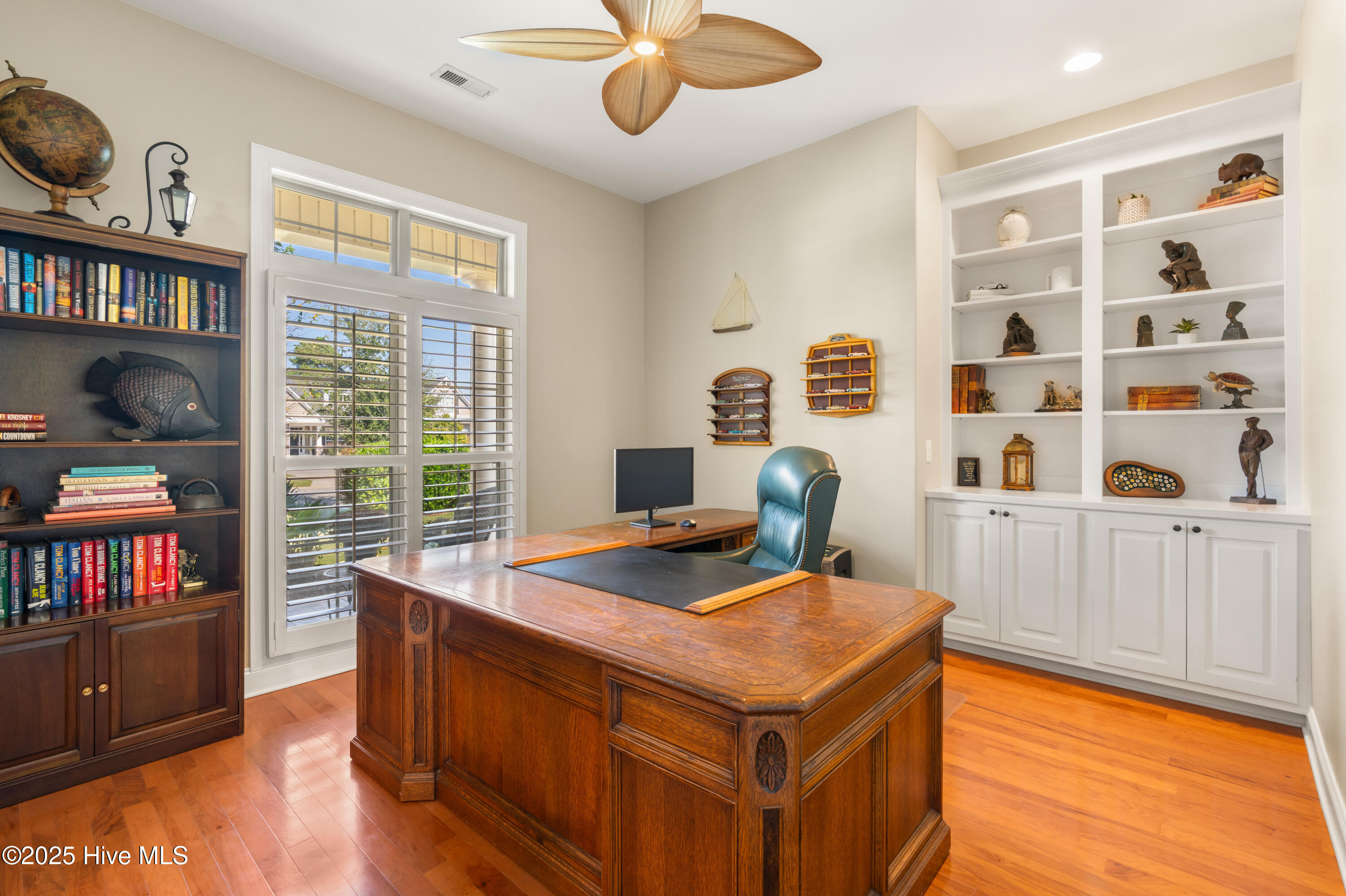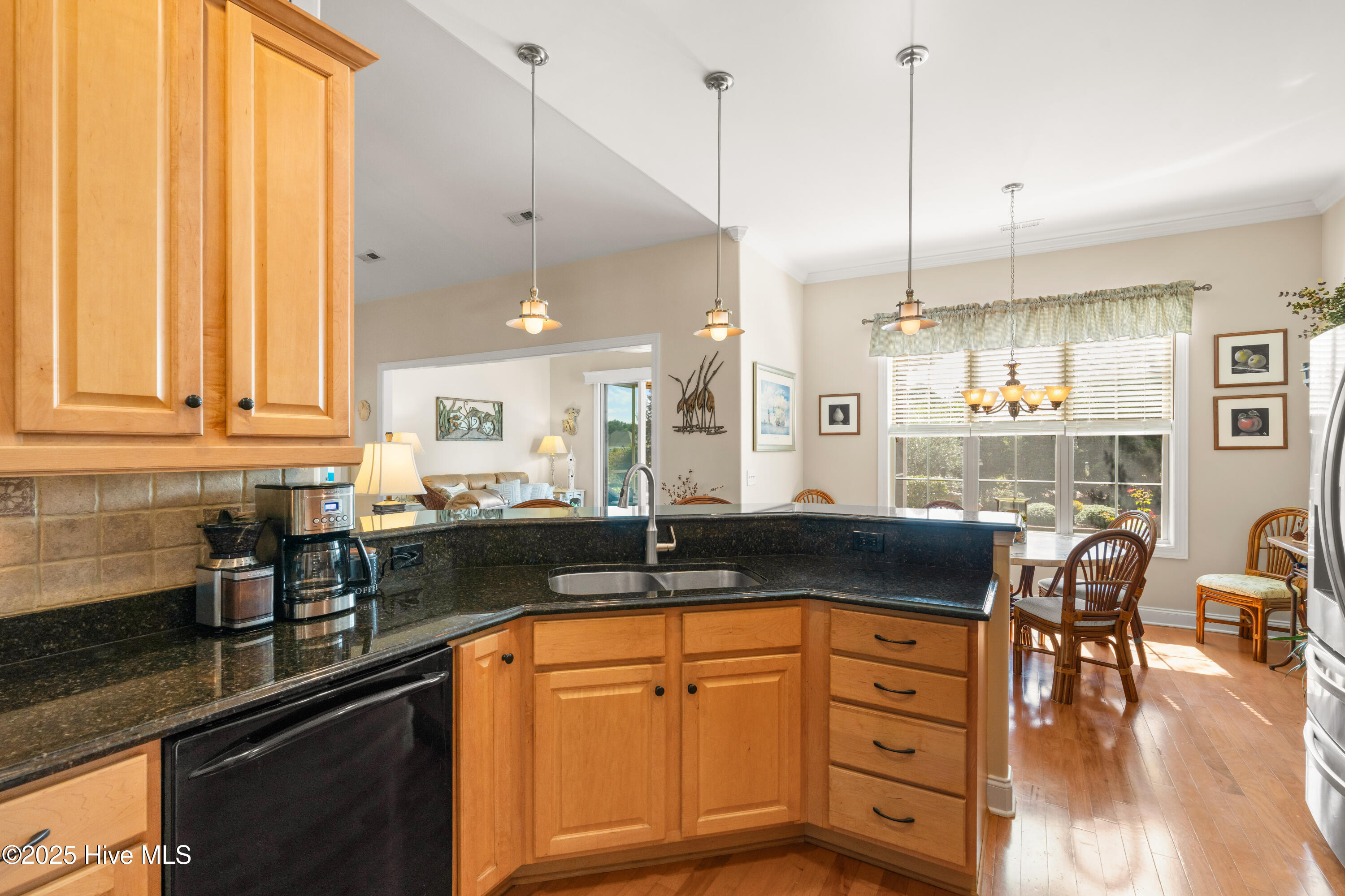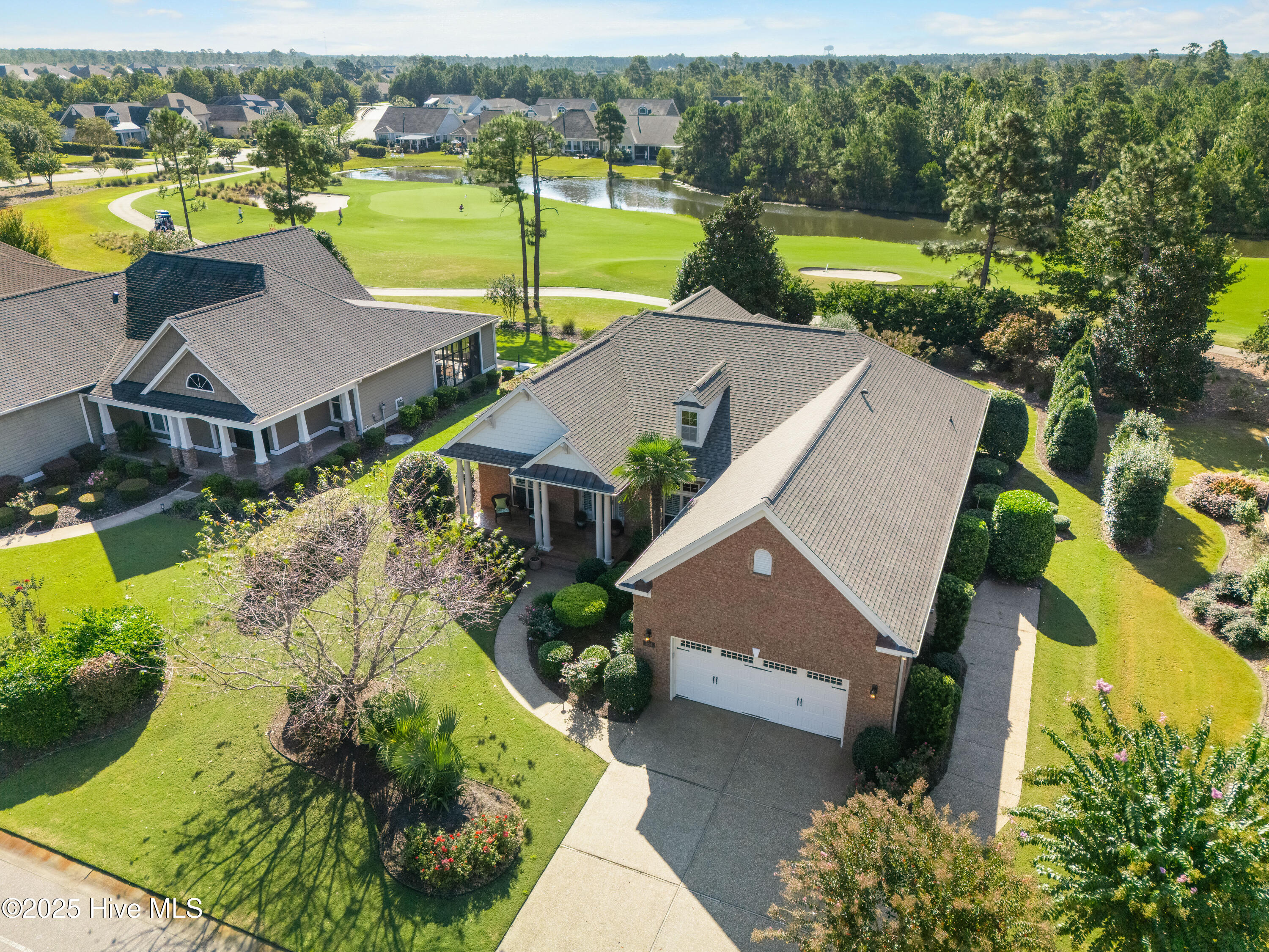 Discover exceptional living in this move-in ready, single-story home located in the prestigious Compass Pointe community in Leland. Designed with quality and thoughtful upgrades throughout, this residence welcomes you with an oversized, colored stamped concrete front porch and boasts an oversized garage with additional golf cart access. Step inside to high and vaulted ceilings in the great room and dining room, plantation shutters, an oversized study with glass French doors, and an open floor plan that seamlessly connects the sunroom and screened porch. The kitchen features beautiful oak cabinets, granite countertops, stainless steel appliances, and a custom backsplash, while the dining room dazzles with lighted tray ceilings and decorative moldings. Relax by the cozy fireplace with built-ins or enjoy the four-season sunroom, screen porch and outdoor patio. The owner's suite offers enhanced ceiling details, a spacious walk-in closet, and a luxurious tile shower and soaking tub. Engineered hardwood flooring and tile extend throughout the main living areas, with plush carpeting in the bedrooms. Set on mature landscaping with views of the #4 Green, the home grants exclusive access to Compass Pointe's resort-style amenities, including the Grand Lanai Clubhouse, Health and Wellness Center, multiple pools, a lazy river, tennis and pickleball courts, and a large events lawn. Golf and social memberships are available at Compass Pointe Golf Club, featuring an 18-hole course, restaurant, and state-of-the-art facilities. Why wait to build when you can enjoy this exceptional home and its savings today?