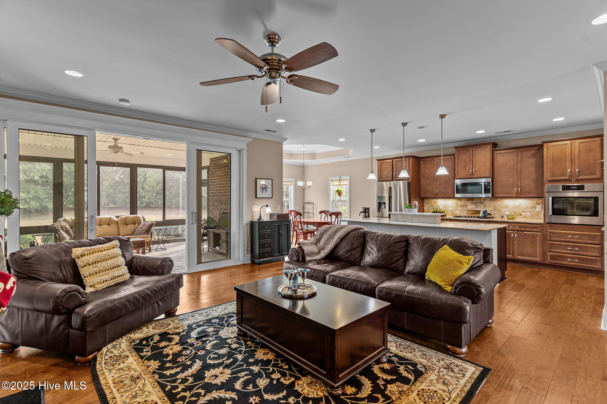 Welcome to the charming coastal town of Leland, NC. Take advantage of our 2-story, exquisite brick home, located in the highly sought-after 50+ community of Compass Pointe. Spanning 2,900 square feet, this custom 4 bed, 3 bath home built by award-winning Horizon Homes is move-in ready. As the 2nd owners, you'll appreciate its value over time due to its desirable CORNER .38-acre lot location. Walk through the open floor plan and scope out the chef's dream kitchen boasting premium Bosch professional-grade appliances, a large granite countertop center island,a surprising spacious walk-in pantry and hardwood flooring--known for its classic beauty, durability, and ability to add value to a home. The primary bedroom is a quiet sanctuary with a 1st floor guest room nearby. Two more guest rooms on the 2nd floor, one currently used as an office, completes this property. You'll find an abundance of closets and walk-in storage making it ideal for those who value organization and have a treasured collection of belongings. Some high-end details include coffered ceilings, ceiling fans, tankless water heater, and an epoxy-coated garage floor. Off the living room, enter a low maintenance, enclosed glass lanai-a place perfect for reading, playing games, or simply enjoying conversations with friends. The backyard oasis is a mix of fresh-cut grass & tall privacy shrubs waiting for a hammock or a gardeners' touch. Living in Compass Pointe means enjoying a vibrant social community with a myriad of amenities like its grand lanai, outdoor pools with a cabana bar, a lazy river, wellness center, tennis and pickleball courts, a kayak launch, dog park, and an extensive network of walking trails. If you are an avid golfer with membership in CP's private championship 18-hole golf course, then its Heritage Collection of Golf Clubs offers worldwide reciprocal access across the US, 41 clubs through affiliation with Links2Golf and The Registry Collection.