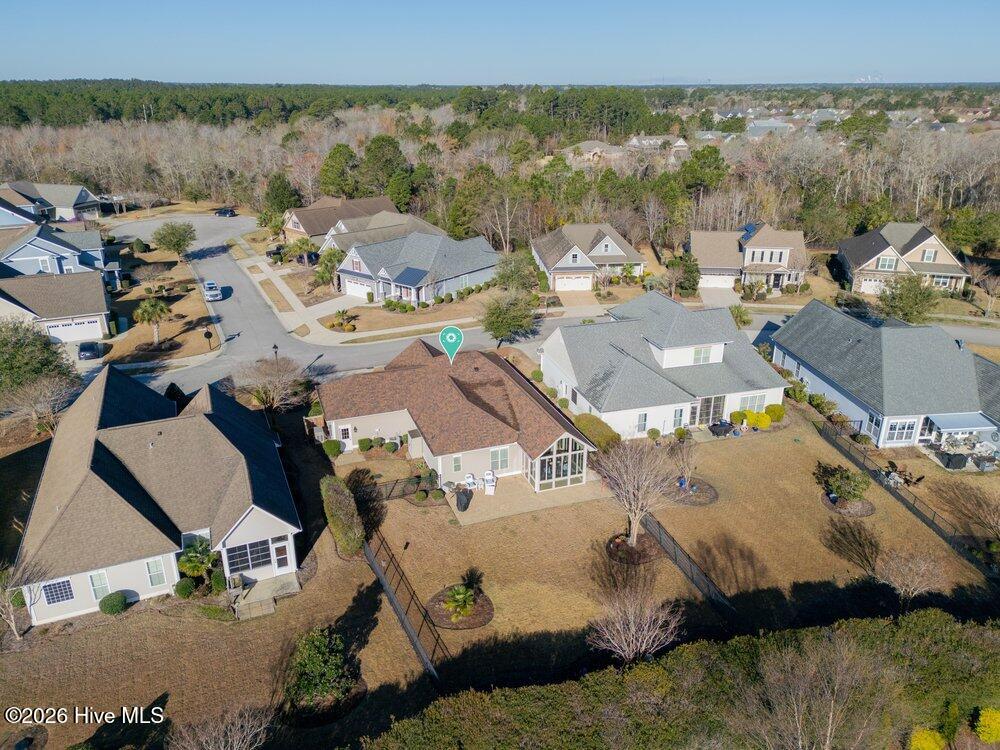 This 3 bedroom, 2 bath home in Compass Pointe offers over 1,600 sq.ft. of heated living space, a 2-car garage, and a glassed-in sunroom with a vaulted ceiling. The sunroom is not heated or cooled, but it provides a bright space to relax while overlooking the back yard. Important updates include a new roof installed in 2020 and a new water heater in 2025. The home is also equipped with a whole-house generator for added convenience during power outages. Inside, wood flooring flows from the foyer into the main living areas, complementing the open floor plan. The horseshoe kitchen features an efficient layout, a hop-up counter ideal for snack time, and an attached breakfast nook for casual dining. The living room includes a built-in bookshelf/ entertainment center that conveys with the sale. Just off the living area is a formal dining room that can also serve as an office or hobby room, depending on your needs. The primary suite features a tray ceiling, double-sink vanity, walk-in shower, garden tub, and linen closet. Two guest bedrooms and a guest bathroom are located at the front of the home, creating privacy for the primary suite. Outside, an oversized patio overlooks a landscaped back yard. Irrigation is installed in both the front and back yards. Compass Pointe offers resort-style amenities (located less than half a mile from this home), including a clubhouse, fitness center, indoor and outdoor pools, lazy river, tennis, pickleball, basketball courts, walking and biking trails, and a kayak and canoe launch. An 18-hole golf course is available with optional membership. Lawn maintenance and irrigation are included in the HOA dues.